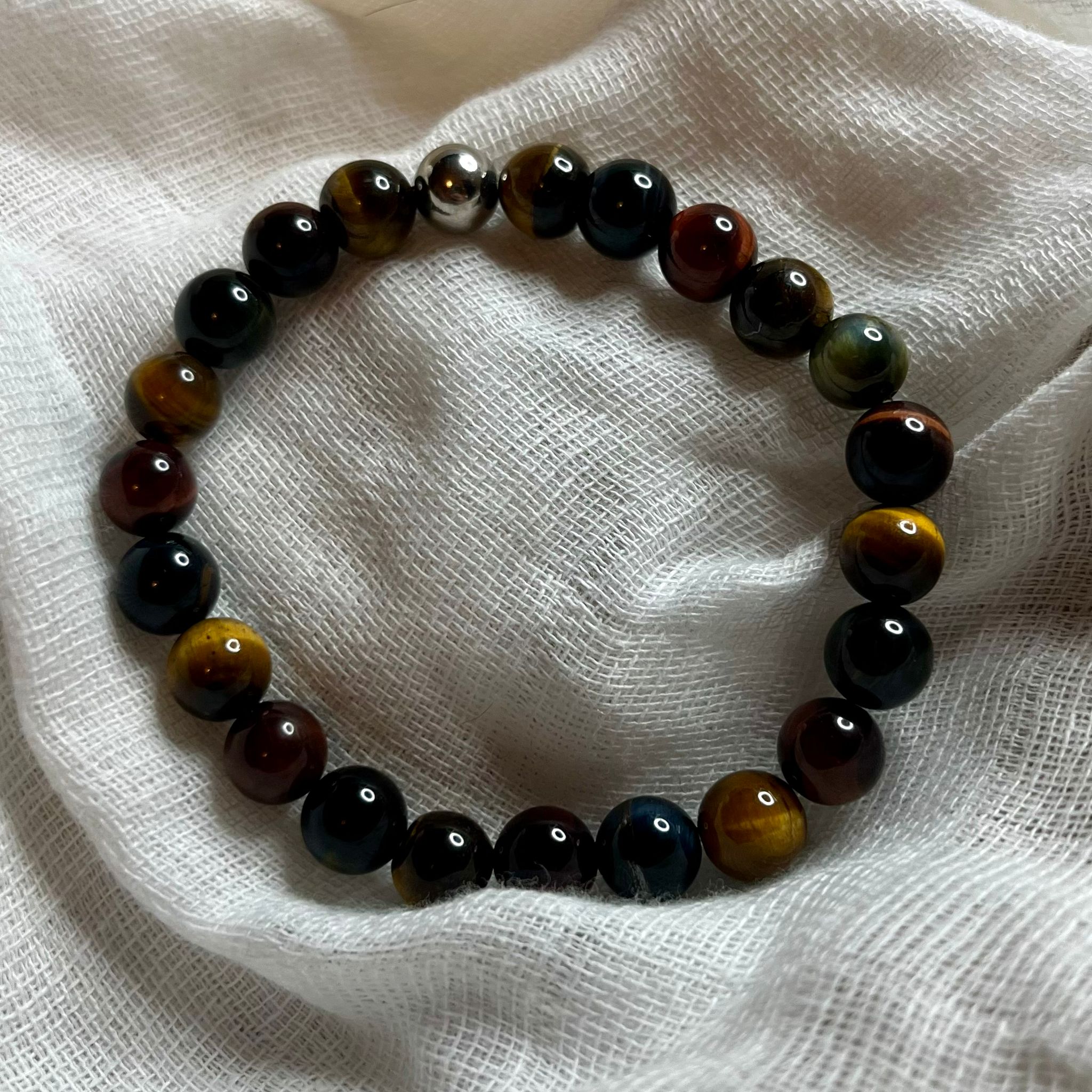 Triple protection et ancrage (Oeil du tigre, du faucon et du taureau) : Pour renforcer la confiance en soi, apaiser l’esprit et renvoyer les énergies négatives tout en aidant à avancer avec courage et ouverture.