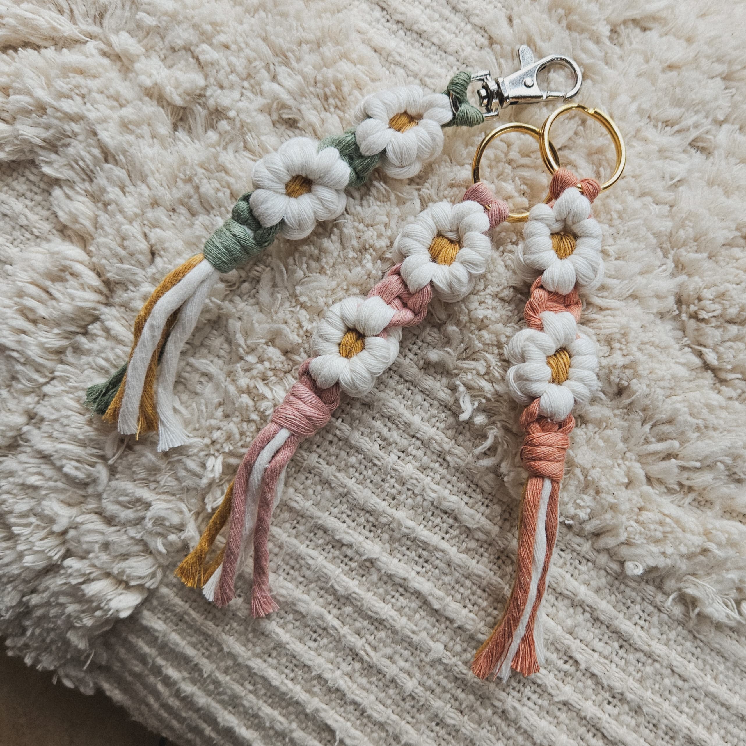 Pour célébrer le printemps et surtout les fleurs.Un joli porte-clés en macramé à rajouter sur son trousseau ou à accrocher sur un sac pour une petite touche colorée.Fil de coton 100% naturel et écologique, certifié OEKO-TEX® et fabriqué en UE.